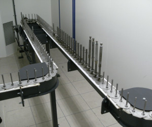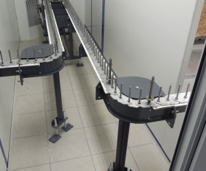 Sur cette installation, notre convoyeur CVFA permet le transport des pièces à traiter dans :